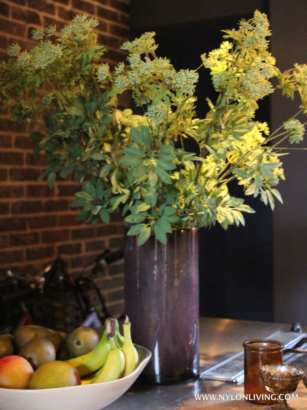 - Oversized flowers on the kitchen counter