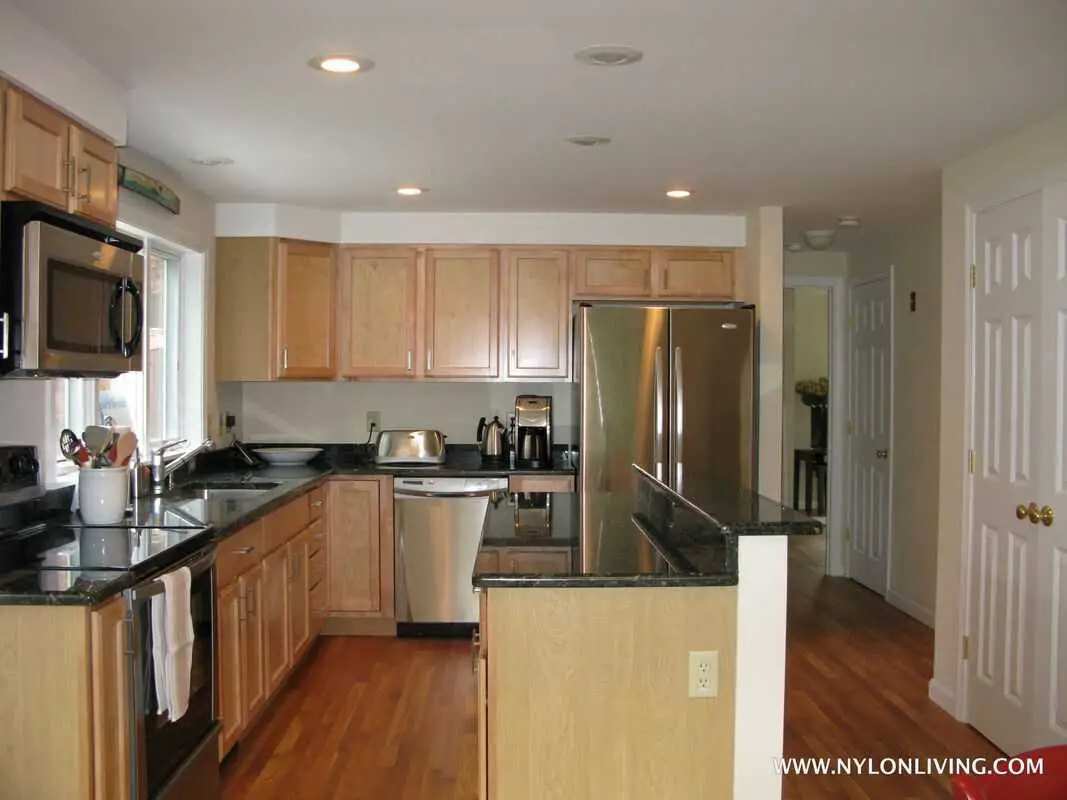 - The kitchen is small but functional.