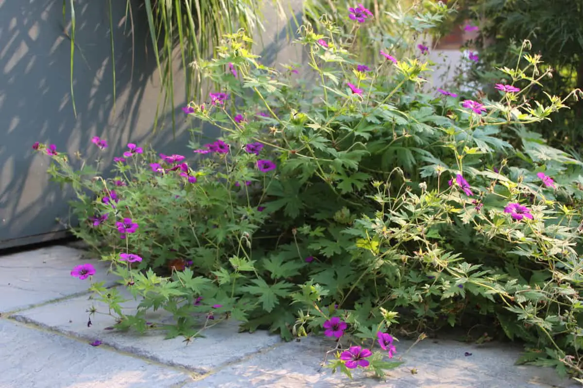 Here are more floppy flowers in the front garden which is underplanting for an ornamental Japanese Acer tree.
